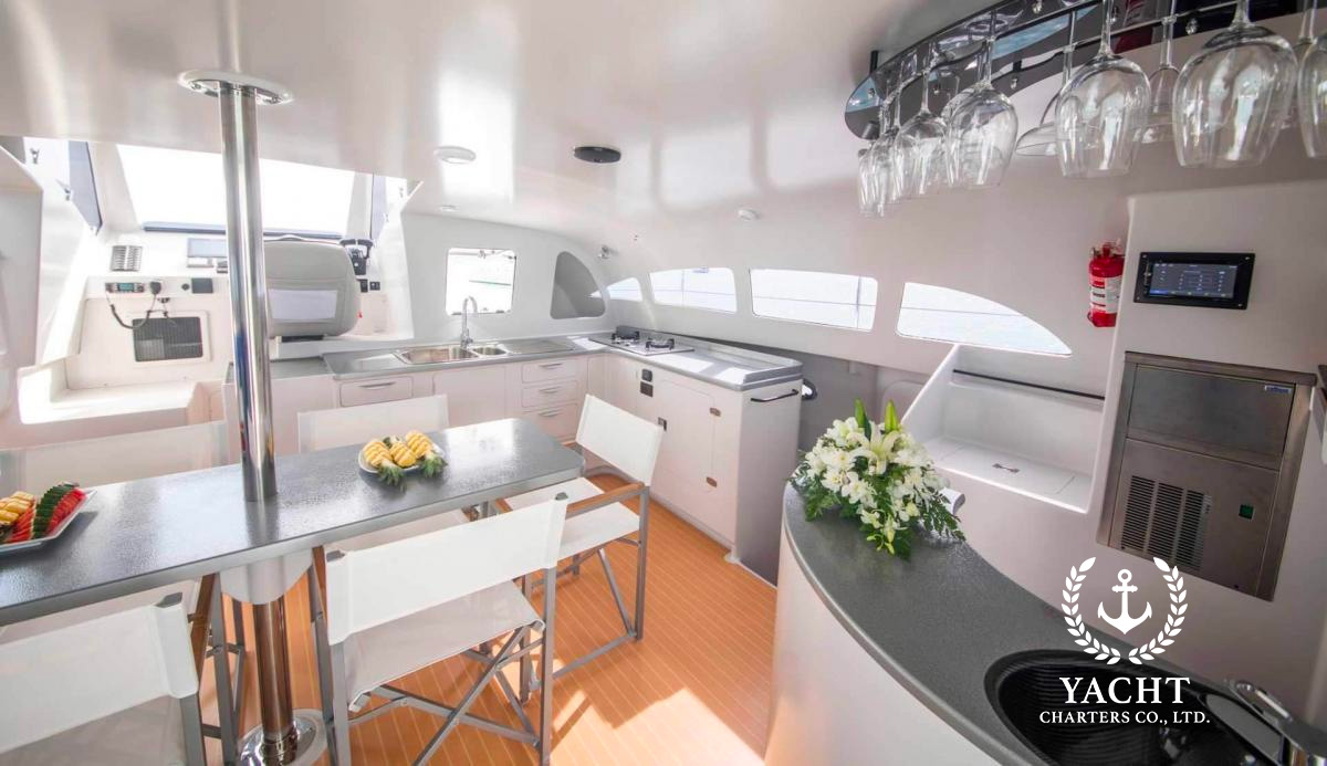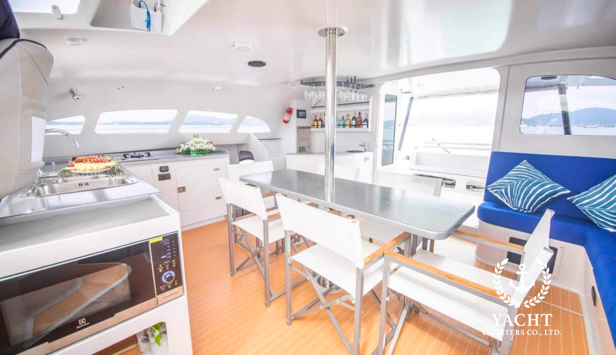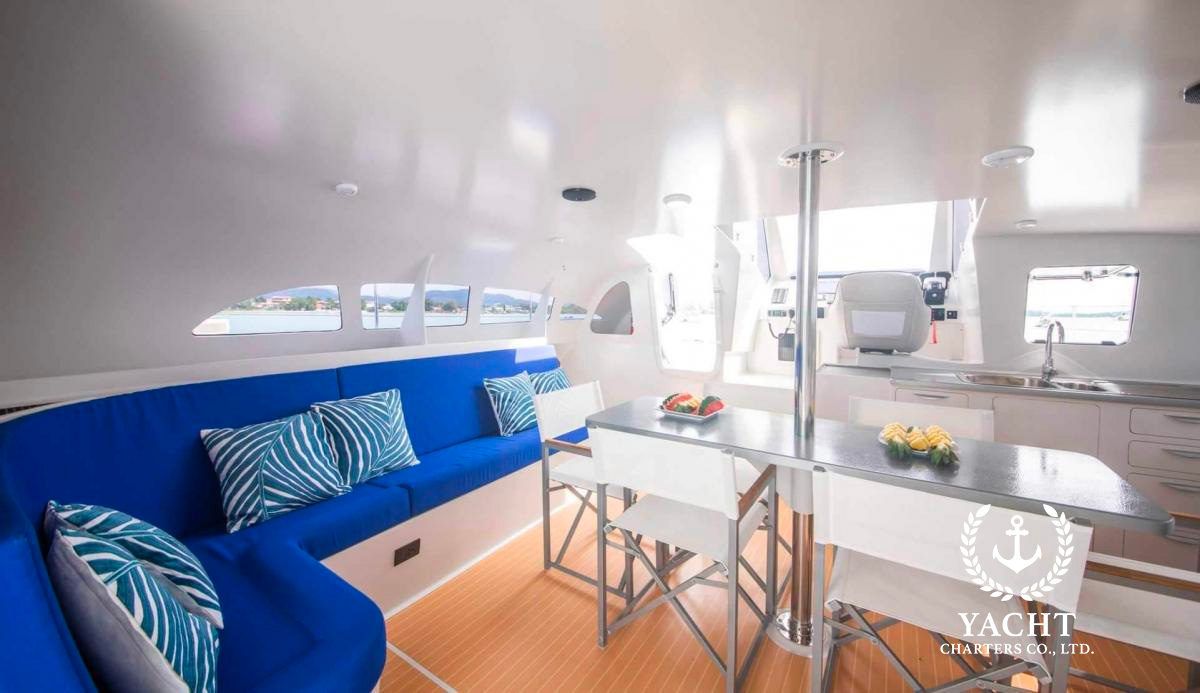 Built in 2019 this 47ft power catamaran features an open plan design with plenty of seating space. With the twin 140HP outboard engines the power catamaran delivers a cruising speed of 16 knots with a very low fuel consumption, which makes it a perfect charter boat! The power catamaran is commercially registered and Thai flagged. The yearly charter revenue is around 5-6 Million Thai baht which brings you a return of invest after 4 years of operation.